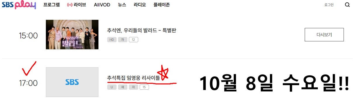 임영웅 리사이틀 재방송 언제? (+sbs 재방송 시간)